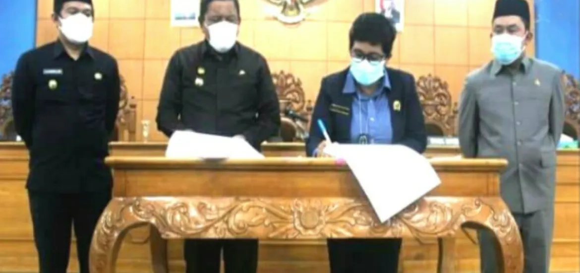 Persetujuan kedua bela pihak dengan penandatanganan nota persetujuan bersama Rancangan Peraturan Daerah (Ranperda) tentang APBD Tahun Anggaran 2022 menjadi Perda