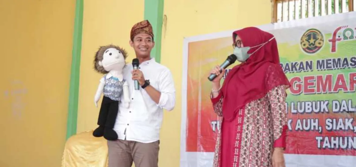 SiberZone.id, Siak - Untuk mengedukasi anak-anak di kabupaten Siak, Forikan Kabupaten Siak menghadirkan pendongeng anak Kak Jho, dengan judul Bangau si penggemar ikan.
