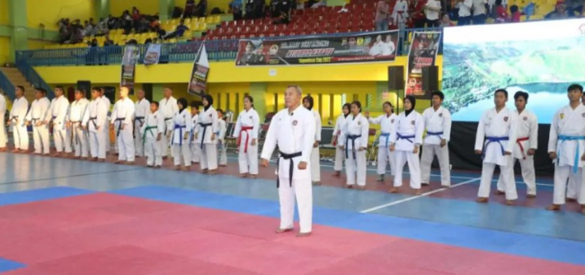 SiberZone.id, Sumut - Dansat Brimob Polda Sumut Kombes Pol Christiyanto Goetomo, S. I. K, SH, M.H menutup Kejurda Karate INKANAS Sumut Kapoldasu Cup 2022 di Gor Mini Dispora Prov. Sumut, Minggu (17/07/2022)