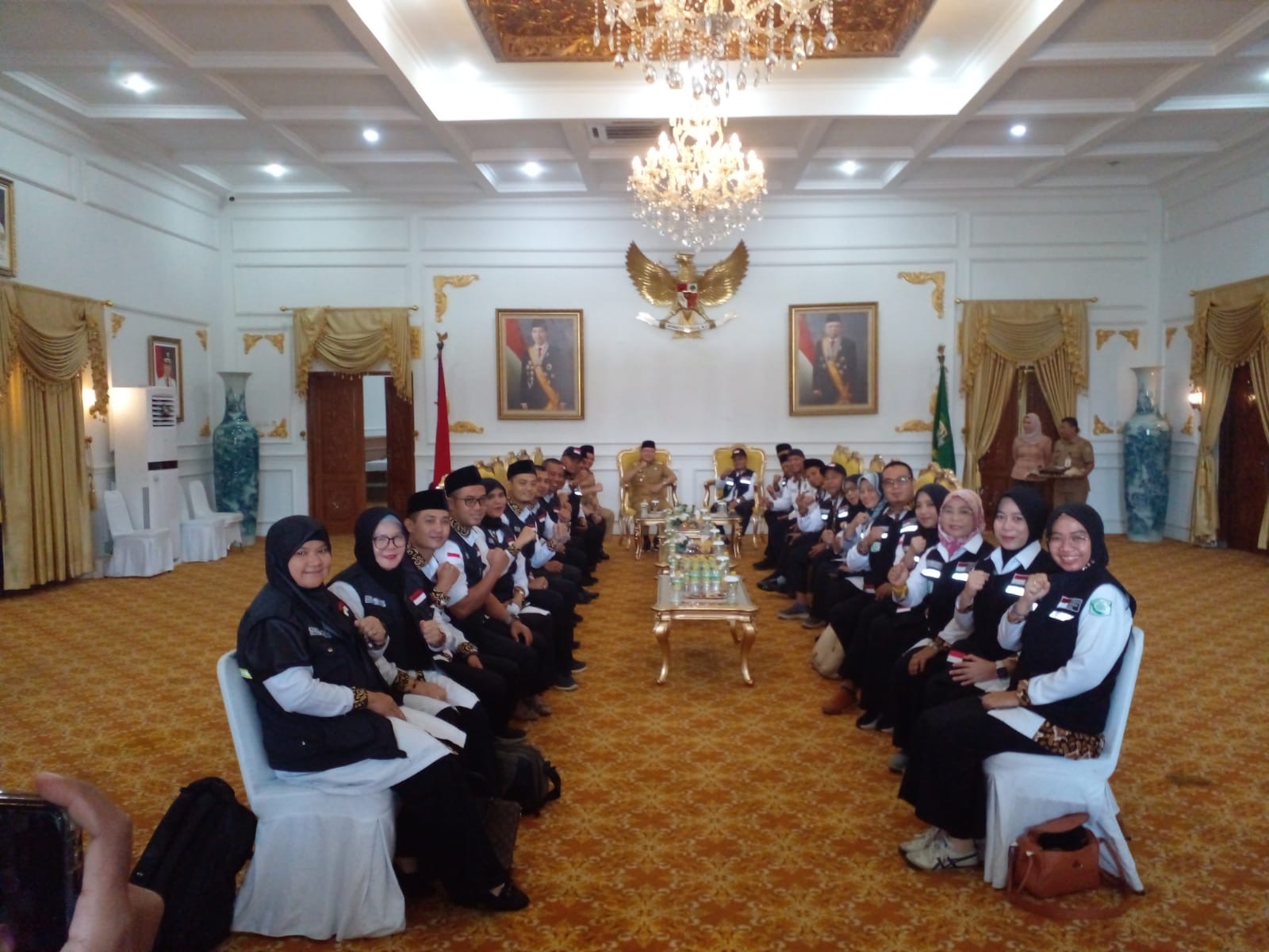 Siberzone.id - Gubernur Bengkulu Rohidin menerima Audiensi Tim Pendamping Haji Daerah Tahun 2024 di Balai Raya Semarak Bengkulu, Senin (15/07/24).
