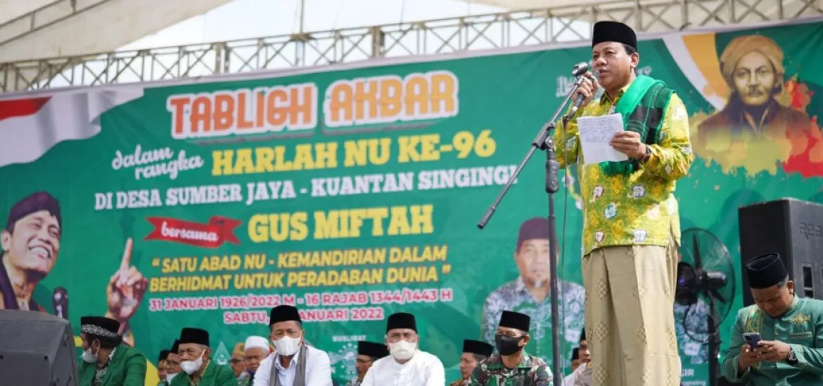 SiberZone.id, Kuansing - Plt. Bupati Kuantan Singingi ( Kuansing ) Drs. H. Suhardiman Amby, Ak, MM menghadiri acara Tabligh Akbar Hari Ulang Tahun ( Harla ) Nadathul Ulama ( NU ) ke 96 yang ditajah oleh PC NU Kuansing, Sabtu siang ( 29/01/2022) di Desa Sumber Raya Kecamatan Singingi Hilir