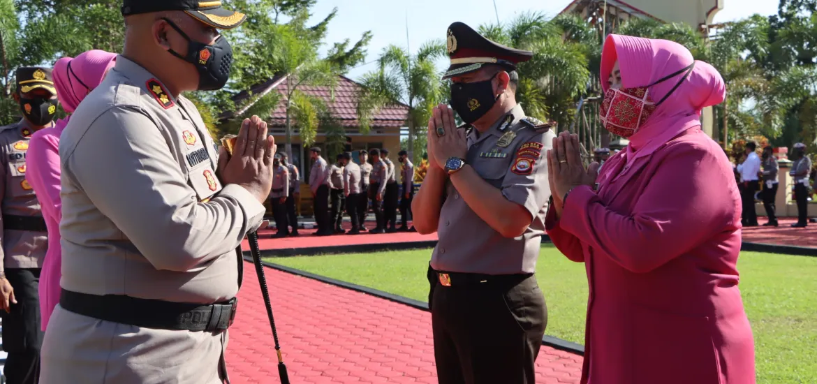 Menerapkan protokol kesehatan ditengah pandemi covid-19, kegiatan kemudian dilanjutkan dengan pemberian ucapan selamat untuk 33 Anggota Polres dan Brimob dengan tetap menjaga jarak selama beraktivitas.