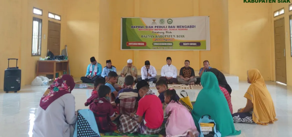 Dalam kegiatan tersebut dihadiri oleh Ketua DPW BKPRMI Provinsi Riau, Ketua BAZNAS Kabupaten Siak, Perwakialan Dinas Kesehatan Kabupaten Siak, Ketua DPD BKPRMI Kabupaten Siak, Kasi Kesos Kantor Camat Sungai Mandau dan Penghulu Kampung Muara Bungkal.