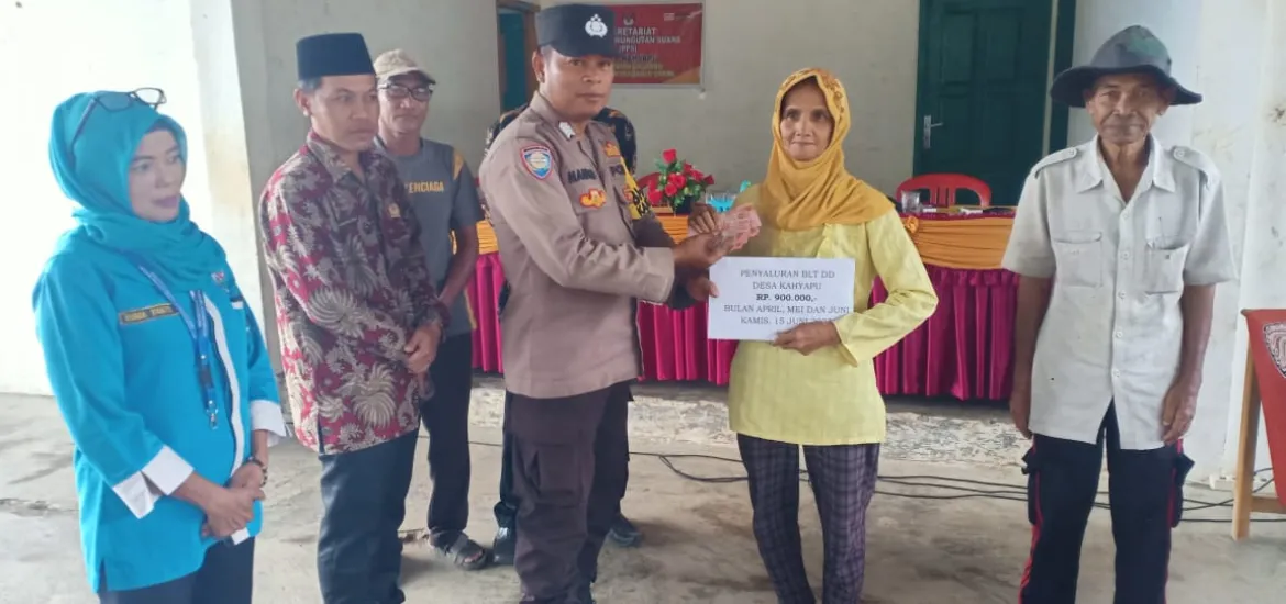 SiberZone.id - Bhabinkamtibmas Polsek Enggano bersama Kepala Desa Kahyapy dan serta pendamping lainnya mengawal pembagian bantuan langsung tunai dana desa (BLT-DD) kepada warga di Desa Kahyapu Kecamatan Enggano Kab. Bengkulu Utara, Jumat (16/06/2023).