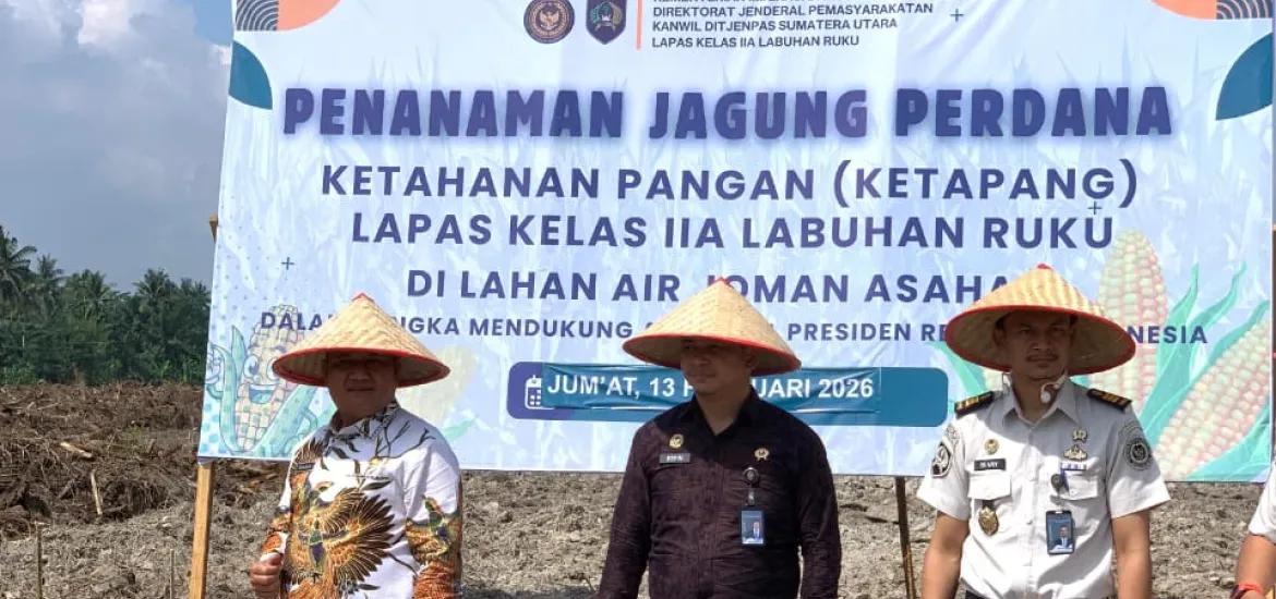 Kegiatan penanaman jagung perdana ini ditandai dengan penanaman bibit jagung secara simbolis oleh Wakil Bupati Asahan bersama Kalapas Labuhan Ruku, Kalapas Tanjung Balai, jajaran Lapas, serta tamu undangan lainnya.