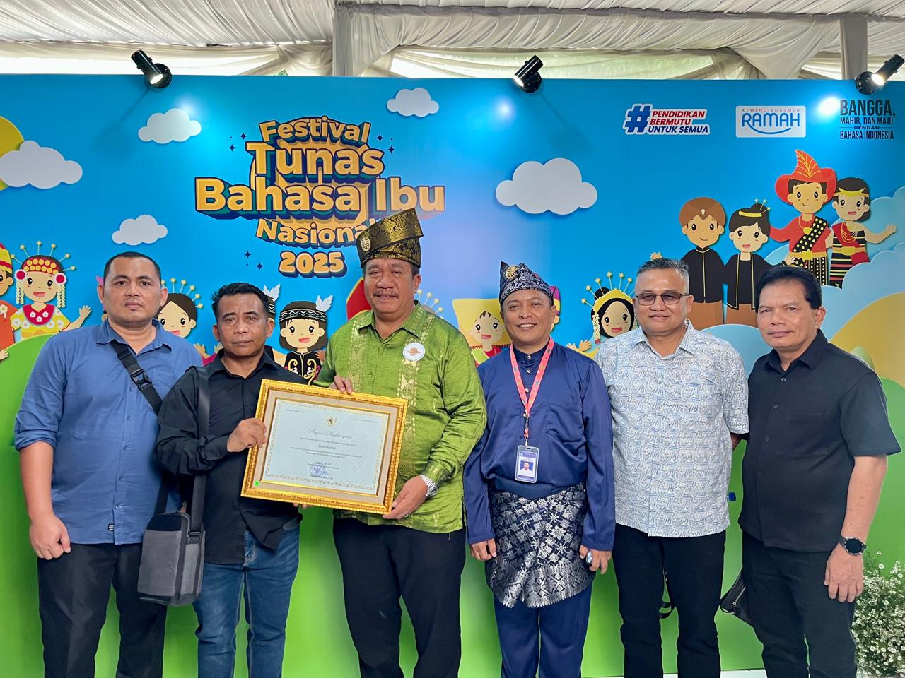 Penghargaan tersebut diserahkan langsung oleh Menteri Pendidikan Dasar dan Menengah, Prof. Dr. Abdul Mu’ti, M.Ed., dalam acara Festival Tunas Bahasa Ibu Nasional (FBIN) 2025 yang digelar di Gedung Merah Putih, Bojongsari, Depok, Provinsi Jawa Barat, pada Senin (26/5/2025).