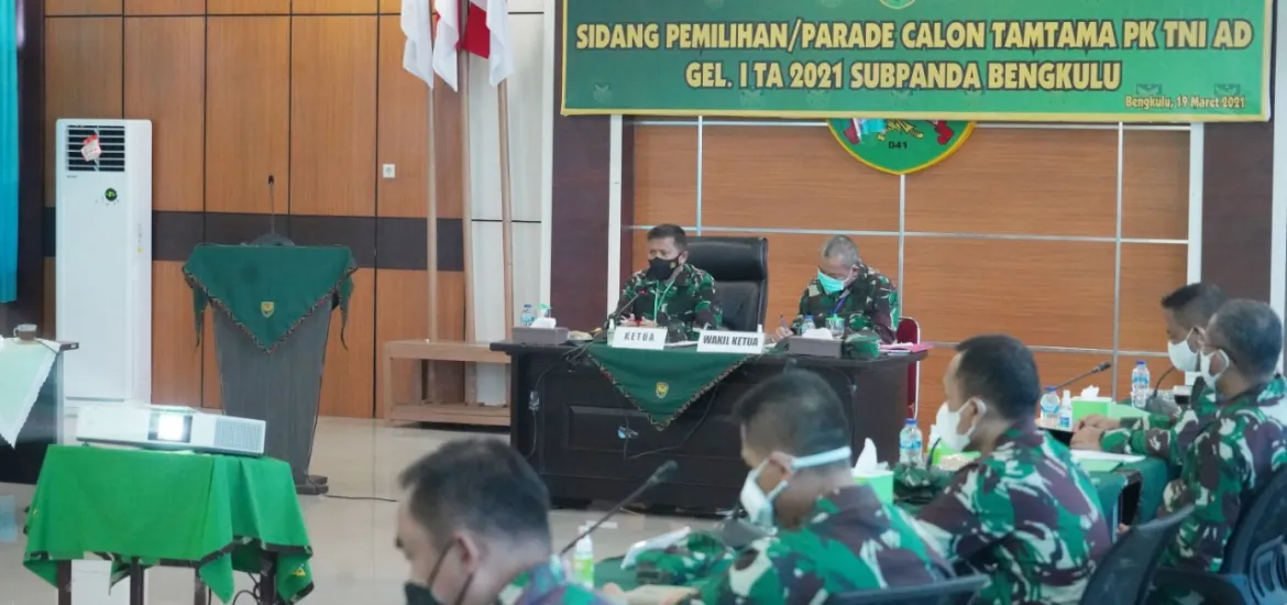 Dalam wawancara singkat dengan Awak Media, Kaajenrem 041/Gamas Letkol Caj Nurul Yakin selaku Sekretaris II Panitia Penerimaan CATA PK TNI AD Gel. I TA. 2021 Subpanda Bengkulu menjelaskan bahwa jumlah calon peserta yang mengikuti sidang Parade CATA PK TNI AD Gel. I TA. 2021 Subpanda Bengkulu sebanyak 457 orang dan akan dipilih sebanyak 199 orang untuk mengikuti seleksi di tingkat Pusat bertempat di Lahat Rindam II/Swj. Selain itu Kaajenrem 041/Gamas juga menjelaskan bahwa seleksi Penerimaan CATA PK TNI AD Gel. I TA. 2021 tidak dipungut biaya sedikit pun. Tegasnya.