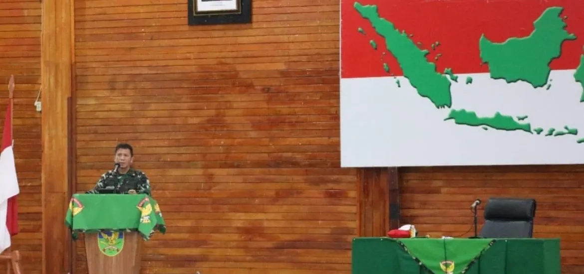 Keterangan Poto : Danrem 041/ Gamas memberikan arahannya kepada prajuritnya di balai prajurit