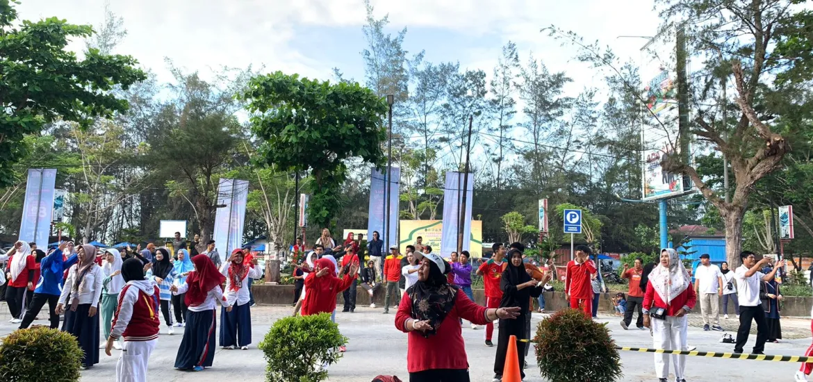 Rosminiarti mewakili Pj Walikota ikut serta senam bersama yang digelar Dinsos di halaman parkir Bencoolen Mall Bengkulu Sabtu, (15/12/2023).