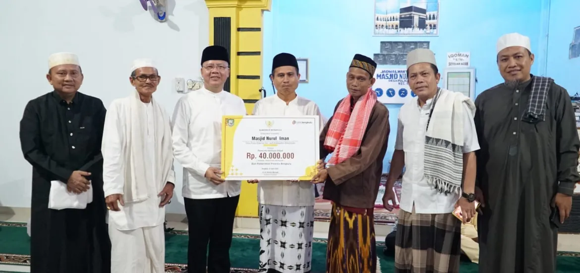 Dalam kesempatan itu Gubernur Rohidin menyerahkan bantuan dari Pemerintah Provinsi Bengkulu kepada Pengurus Masjid Nurul Iman Desa Pulau Makmur sebesar 40 juta rupiah. (GTA)