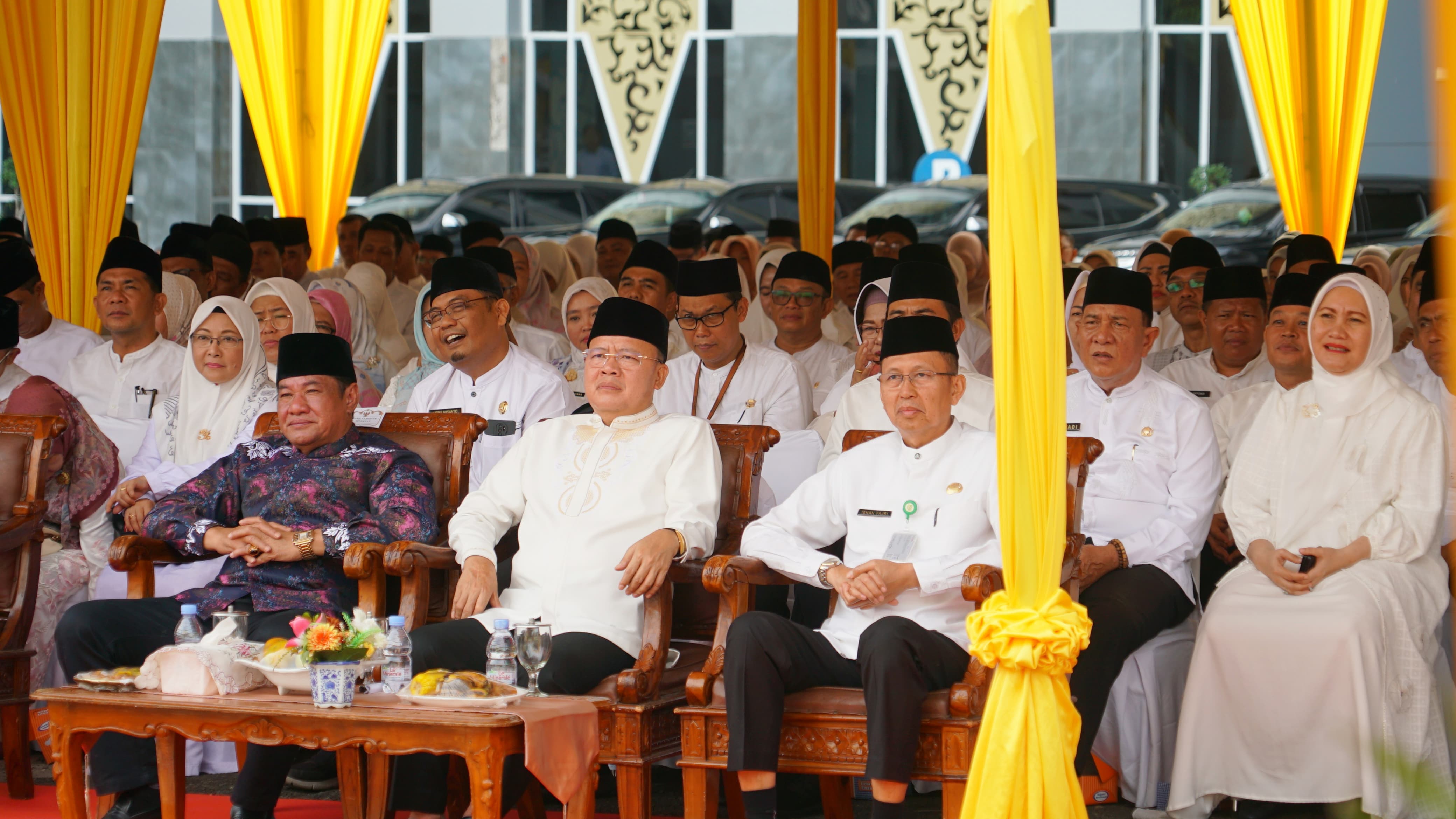 Diawali dengan ceramah agama dan doa bersama, Gubernur Rohidin mengajak seluruh ASN Pemprov untuk saĺing memaafkan di Hari Raya Idulfitri 1445 Hijriah inì.
