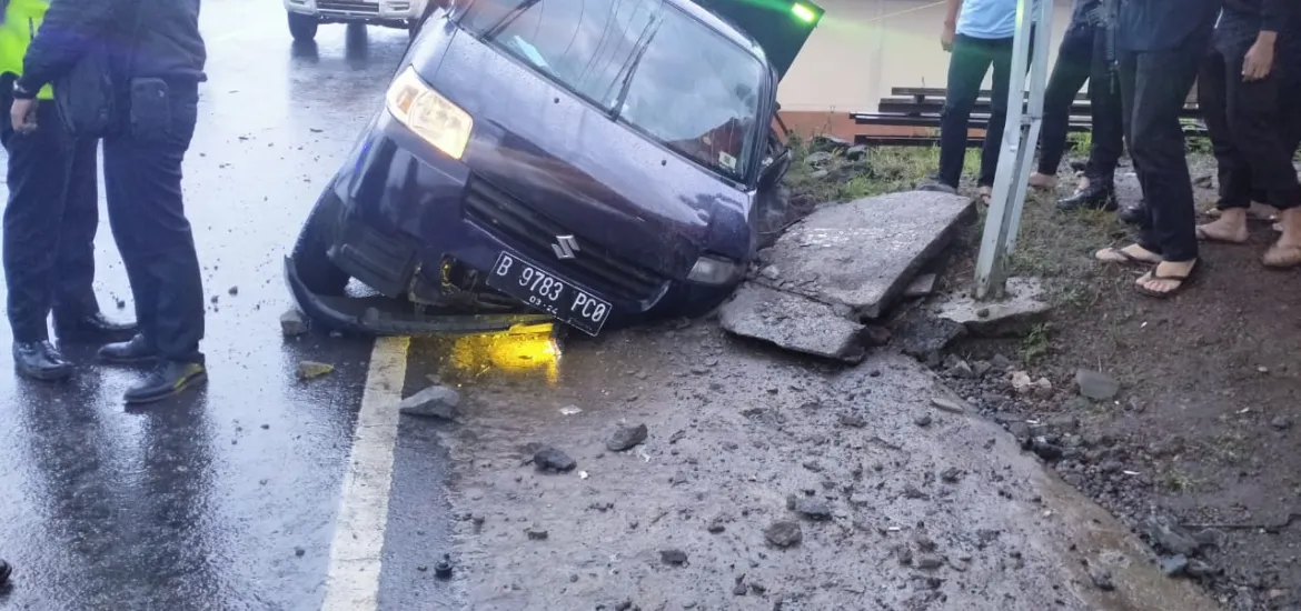 “Jalan licin setelah hujan sore kemarin diduga menjadi penyebab mobil kehilangan kendali.”Ungkap Kasat Lantas Polres RL.