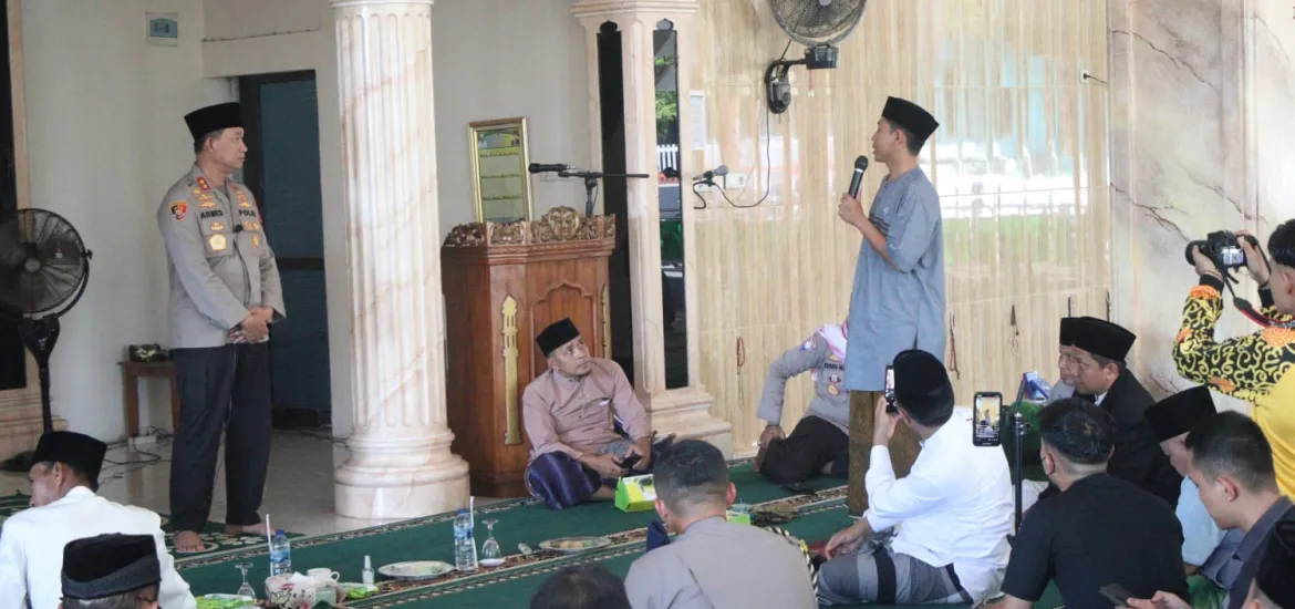 Dalam kegiatan yang berlangsung usai pelaksanaan shalat jumat berjamaah ini, Kapolda Bengkulu mengajak masyarakat untuk lebih berpartisipasi mendukung upaya kepolisian menjaga situasi kamtibmas yang tetap kondusif melalui sumbangsih berupa saran, kritik atau pertanyaan.