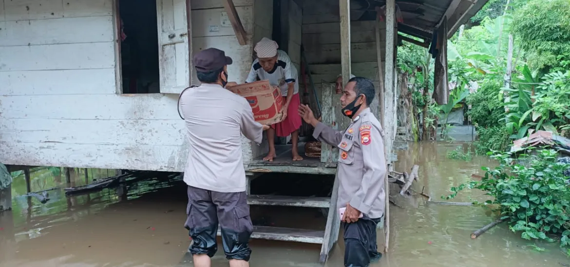 Kapolres Mukomuko Bagikan Bantuan kepada Warga Terendam Banjir