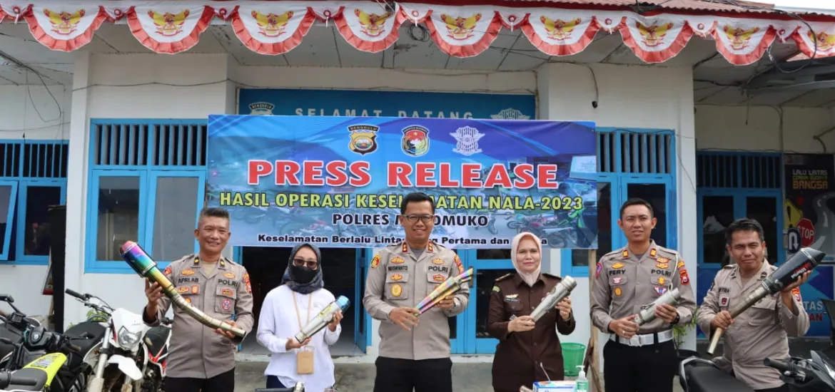 kapolres Mukomuko Pimpin Press Release Ops Keselamatan Nala 2023, Puluhan Knalpot Brong Dimusnahkan