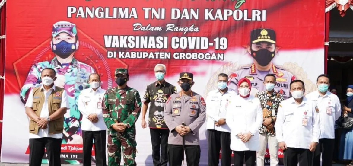 Siberzone.id, Grobogan – Panglima TNI Marsekal Hadi Tjahjanto dan Kapolri Jenderal Listyo Sigit, bersama Kepala BNPB Ganip Warsito dan Gubenur Jateng Ganjar Pranowo, meninjau langsung vaksinasi di kabupaten Grobogan, Jawa Tengah, Minggu siang (6/6/2021).