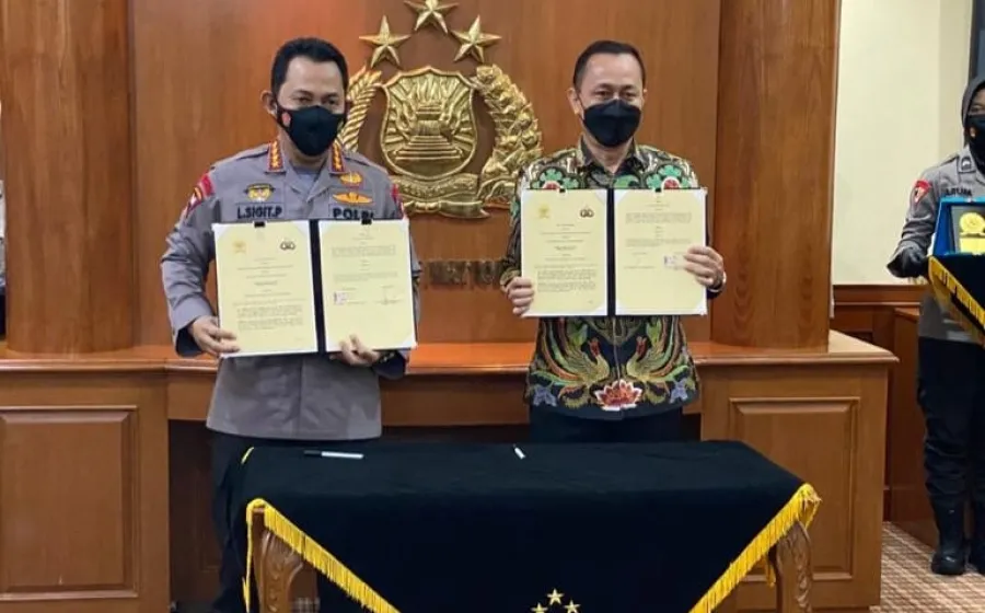 Keterangan Poto : Kapolri Jenderal Listyo Sigit Prabowo menunjukkan MoU yang sudah tandatangan bersama Komnas HAM
