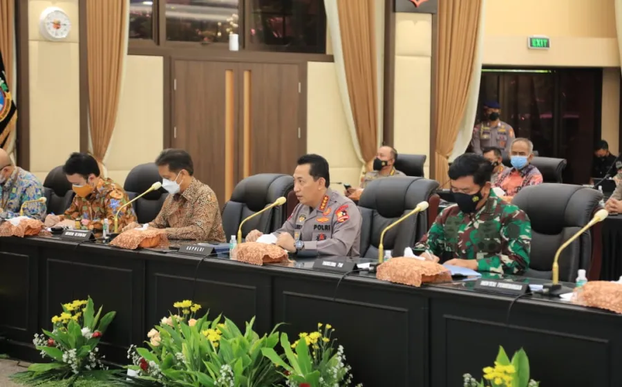 Foto : Kapolri Jenderal Listyo Sigit Prabowo didampingi Panglima TNI Marsekal Hadi Tjahjanto dan beberapa pihak terka