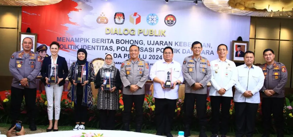 ialog itu digelar dalam rangka menampik berita bohong, ujaran kebencian, politik identitas, polarisasi politik dan SARA pada Pemilu 2024 mendatang.