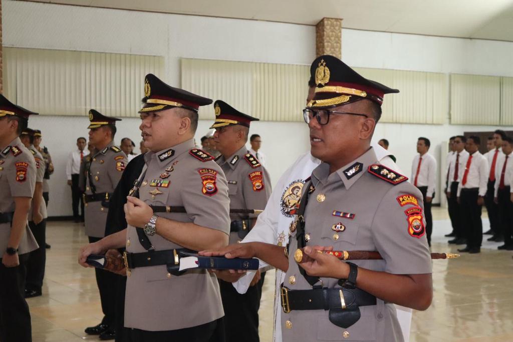 Kapolda menyampaikan apresiasinya kepada pejabat lama atas prestasi yang sudah ditorehkan, dan untuk pejabat baru Kapolda meminta untuk cepat beradaptasi serta tingkatkan prestasi yang sudah di torehkan oleh pejabat lama,” ucap Kombes Pol Anuardi.