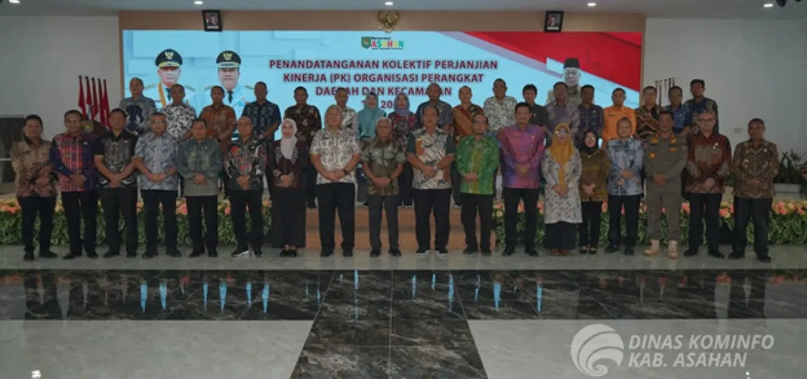 Siberzone.id -- Pemerintah Kabupaten Asahan melalui Bupati Asahan, H. Surya, B.Sc, melakukan penandatanganan kolektif Perjanjian Kinerja (PK) dengan Organisasi Perangkat Daerah (OPD) dan Kecamatan di Aula Melati Kantor Bupati Asahan pada Kamis (30/01/2025). Acara ini dihadiri oleh Wakil Bupati Asahan, Sekretaris Daerah Kabupaten Asahan, Asisten, Staf Ahli, para Kepala OPD, serta para Camat.