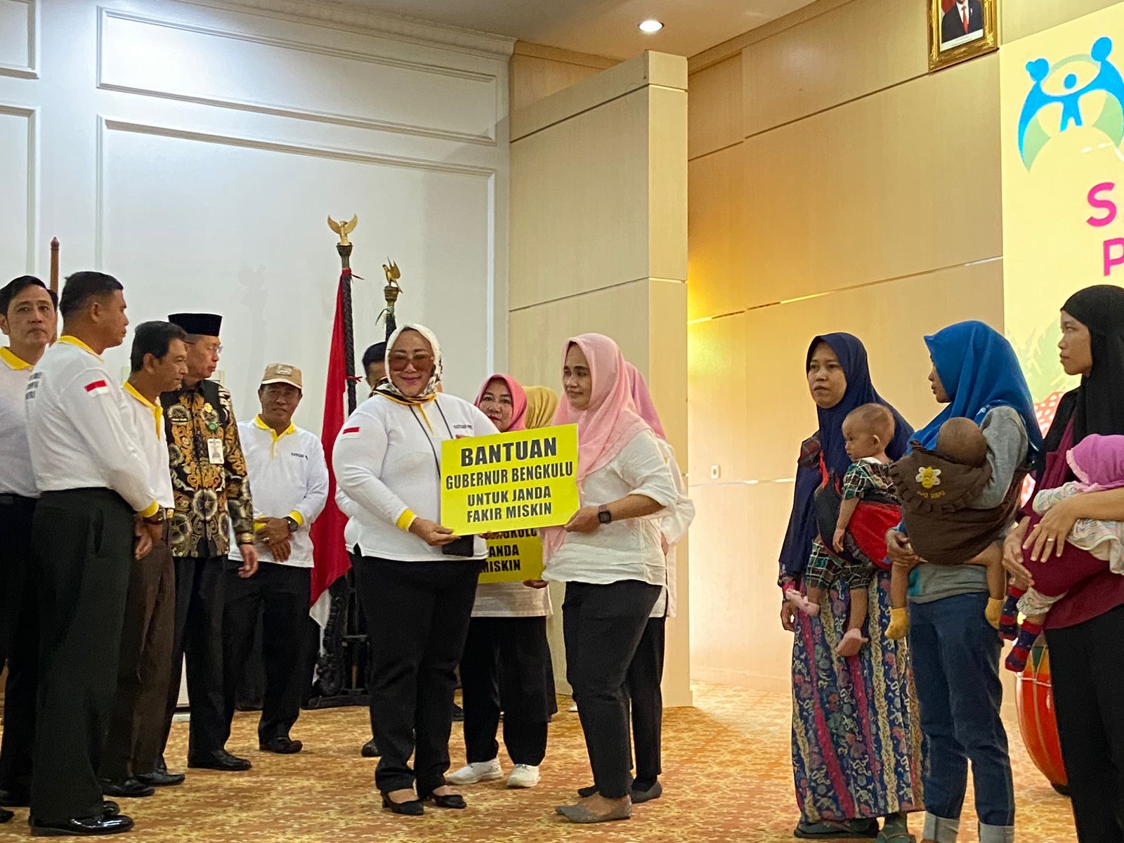 Selain pengukuhan, DP3AP2KB Provinsi Bengkulu juga memberikan bantuan sembako kepada janda miskin dan anak-anak yang beresiko stunting.