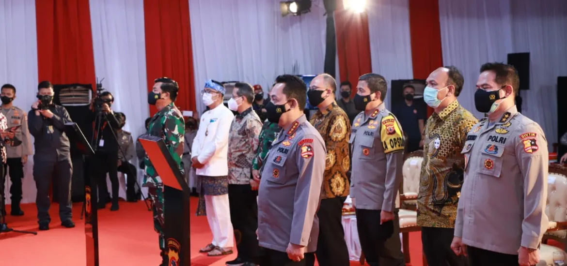 Foto : Kapolri Jenderal Listyo Sigit Prabowo didampingi Panglima TNI Marsekal Hadi Tjahjanto dan beberapa pihak terkait meluncurkan layanan darurat atau Hotline 110.