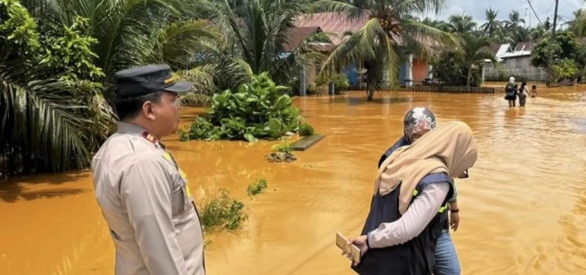 Siberzone.id - Kapolsek Semidang Alas Maras bersama personil Polsek melakukan pengecekan terhadap peristiwa banjir yang melanda wilayah Kecamatan Semidang Alas Maras, Kabupaten Seluma, pada Jumat (11/10/2024).