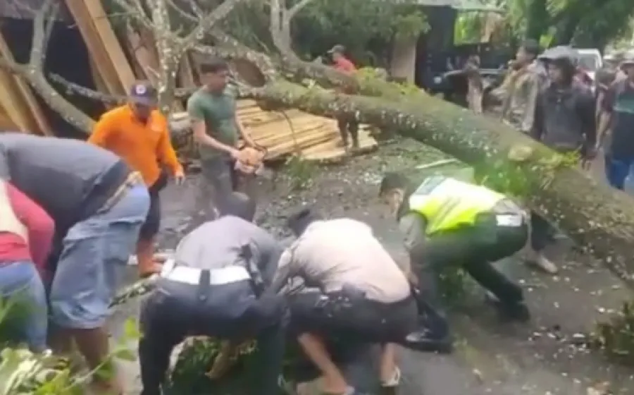 Polres Kepahiang Bersama BPBD Evakuasi Pohon Tumbang