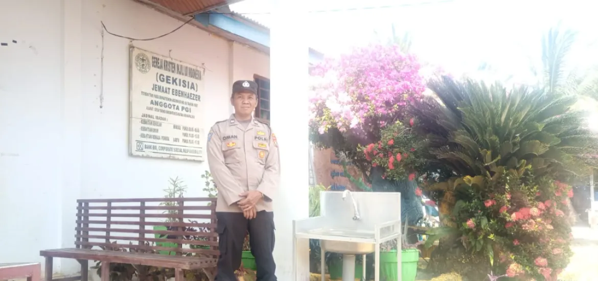 SiberZone.id - AIPTU Oman, SH bersama dengan AIPTU Zarkoni Personel Polsek Air Besi melaksanakan Pengamanan Ibadah Minggu di Gereja Gekisia Jemaat Ebenhaezer Desa Tebing Kandang Kecamatan Air Napal Kabupaten Bengkulu Utara, Minggu (03/09/2023).
