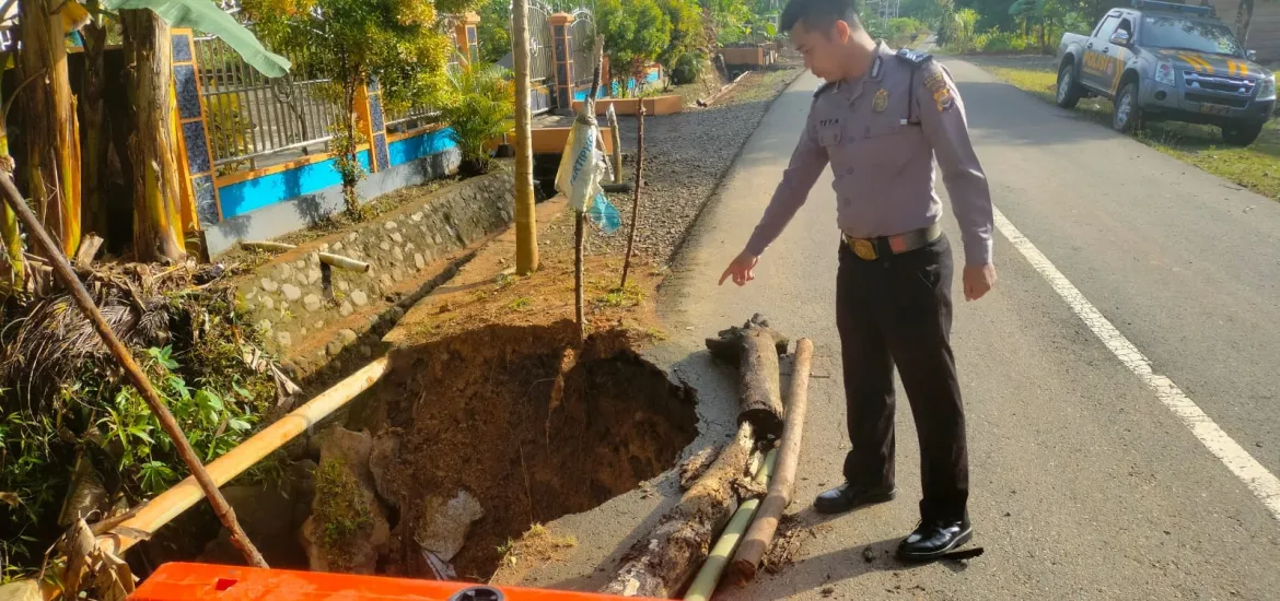Siberzone.id - Sigap dan Tanggap, Kanit Samapta Polsek Giri Mulya AIPTU HARI HARTONO, S.IP berserta Personel Polsek Giri Mulya BRIGPOL TRY HARTANTO, SM melaksanakan Quick Respon laporan masyarakat terkait adanya jalan yang amblas di RW 6 Desa Giri Mulya Kecamatan Giri Mulya.