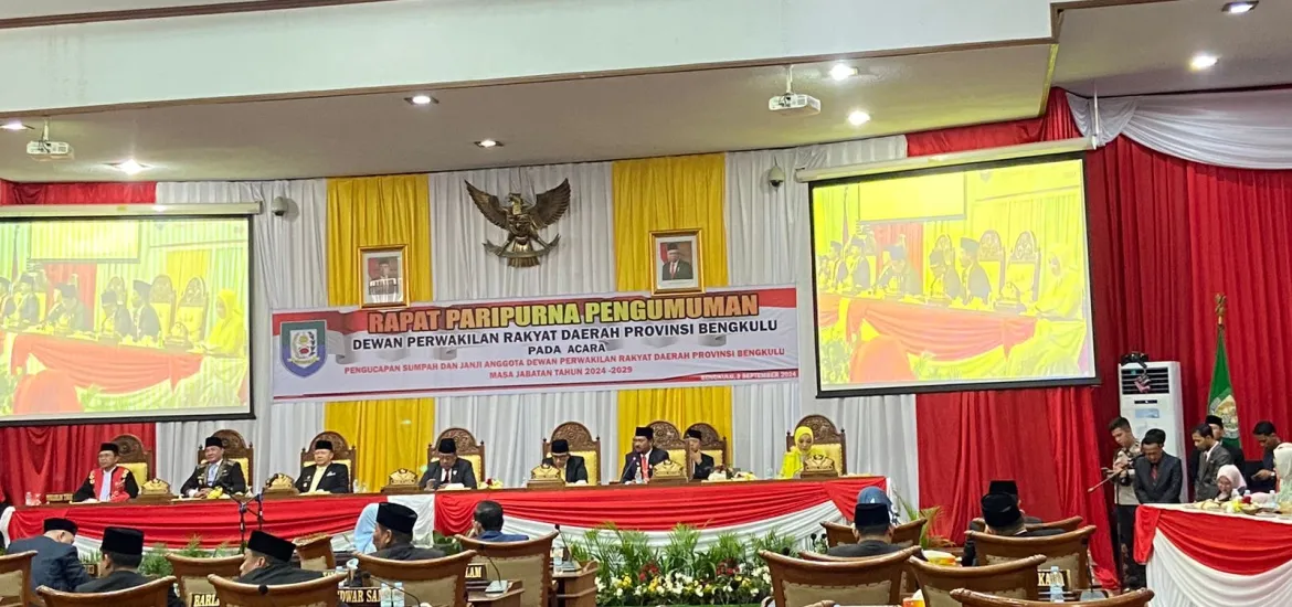 Siberzone.id - Sebanyak 45 anggota Dewan Perwakilan Rakyat Daerah (DPRD) Provinsi Bengkulu periode 2024-2029 resmi dilantik di Gedung DPRD Provinsi Bengkulu pada Senin, (02/09/2024).