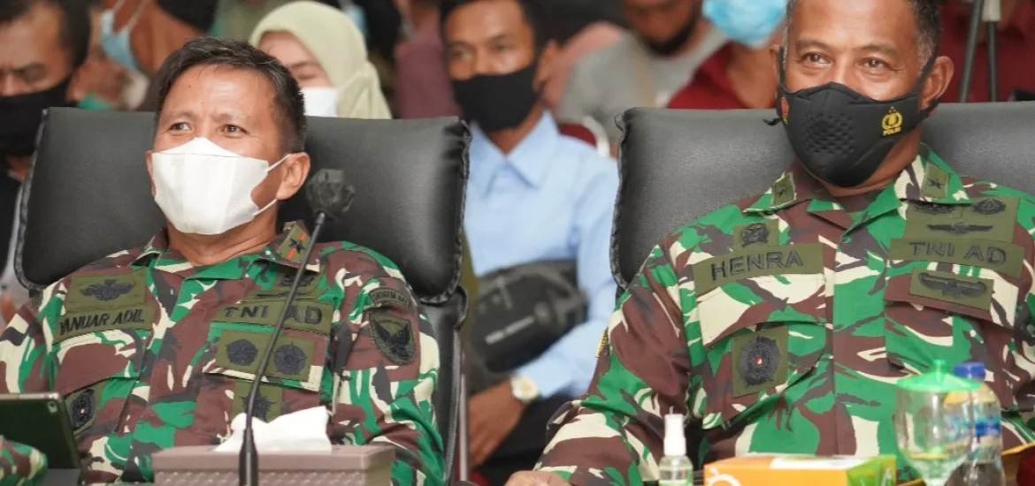 Siberzone.id, Bengkulu - Danrem 041/Gamas Brigjen TNI Yunuar Adil bersama Irdam II/Swj TNI Henra Hari Sutaryo mengikuti Vidcon pengarahan Kasad Jenderal TNI Andika Perkasa Kepada Orang Tua/Wali CATA PK TNI AD Gel. I TA. 2021 Zona Barat, bertempat di Gedung Balai Prajurit Korem 041/Gamas, Rabu (24/3/2021).