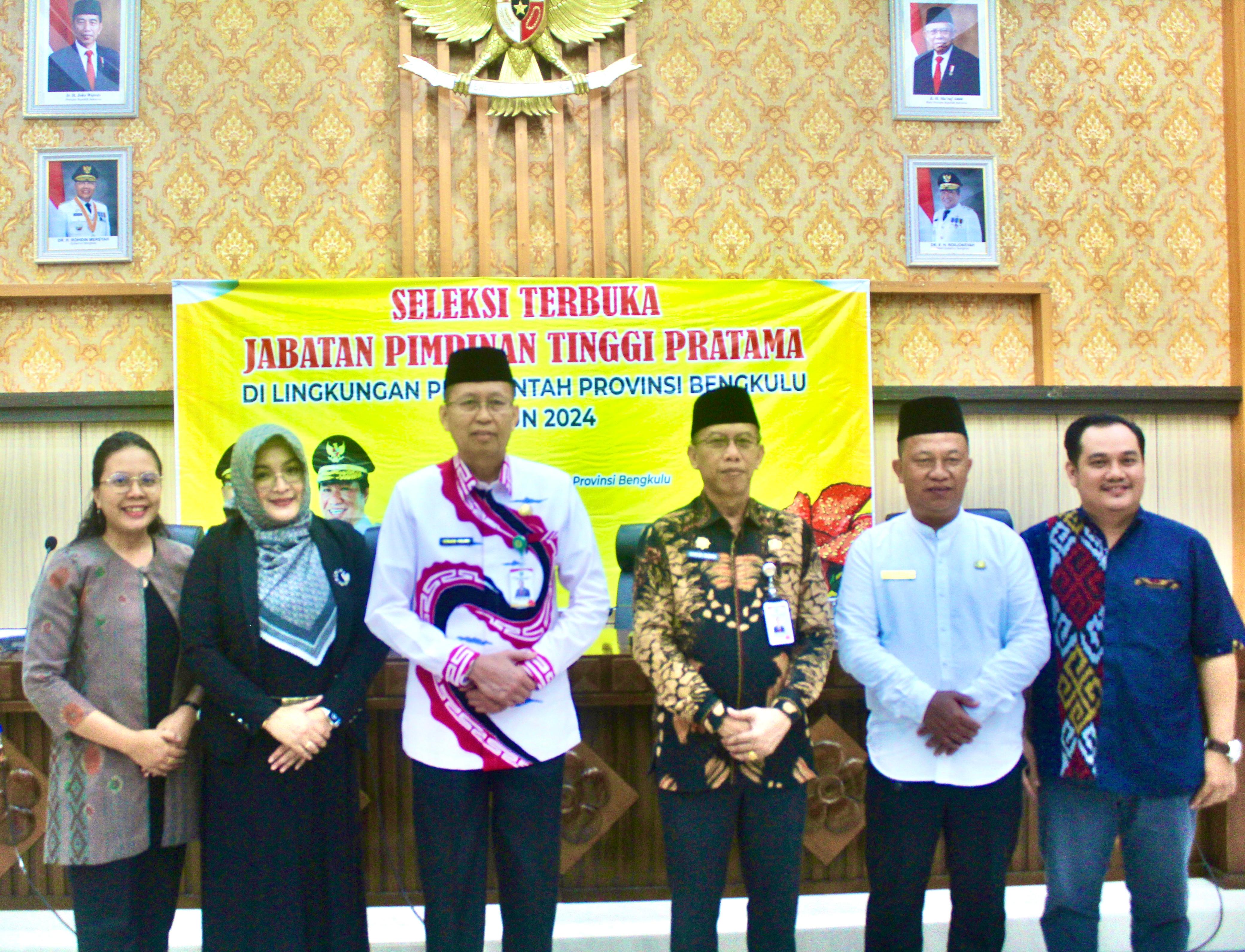 Siberzone.id - Sekda Provinsi Bengkulu Isnan Fajri didampingi Asisten III Nandar Munadi membuka assesment seleksi JPT Pratama di Lingkup Pemerintah Provinsi Bengkulu yang bertempat di Gedung Pola Provinsi Bengkulu pada Jumat (19/4/2024).