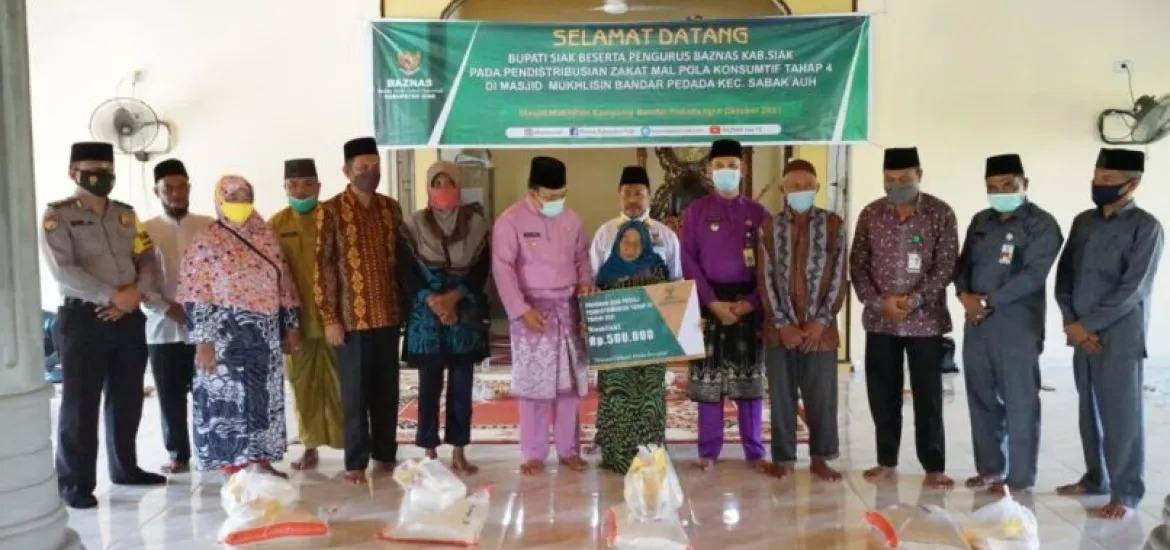Ketua Baznas Kabupaten Siak Abdul Rasyid Suharto mengatakan bahwa hari ini merupakan perdana untuk pendistribusian Zakat Tahap IV tahun 2021.