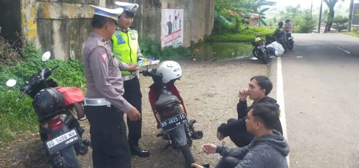 Unit Kamsel Sat Lantas Polres Seluma Melaksanakan Himbauan dan memberikan brosur tentang tata tertib berlalu lintas kepada pengguna sepeda motor di jalan bawah jembatan lintas Bengkulu - tais kelurahan Pasar Tais Kecamatan Pasar Tais Kabupaten Seluma.