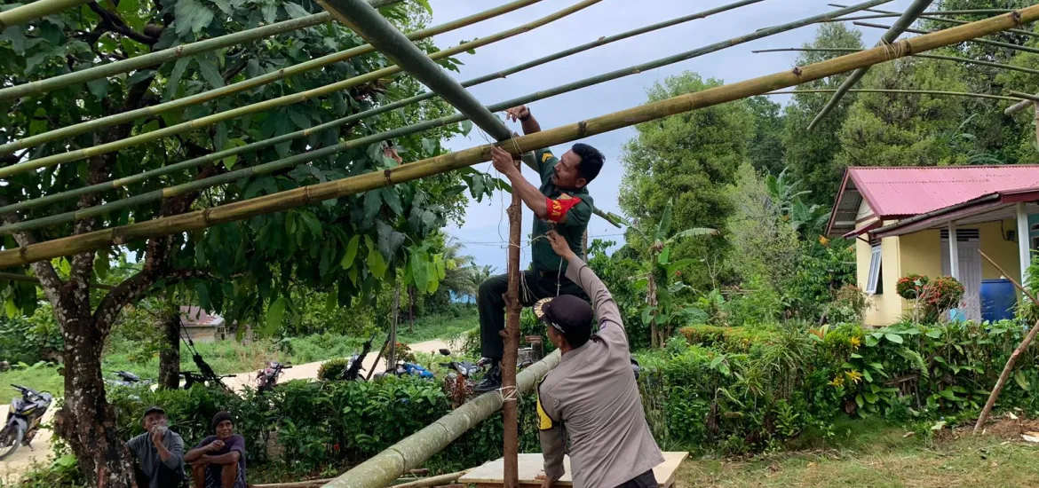 Wujudkan Sinergitas Babinsa dan Bhabinkabtibmas Gotong Royong membantu di Rumah Warga Yang Akan Melaksanakan Hajatan