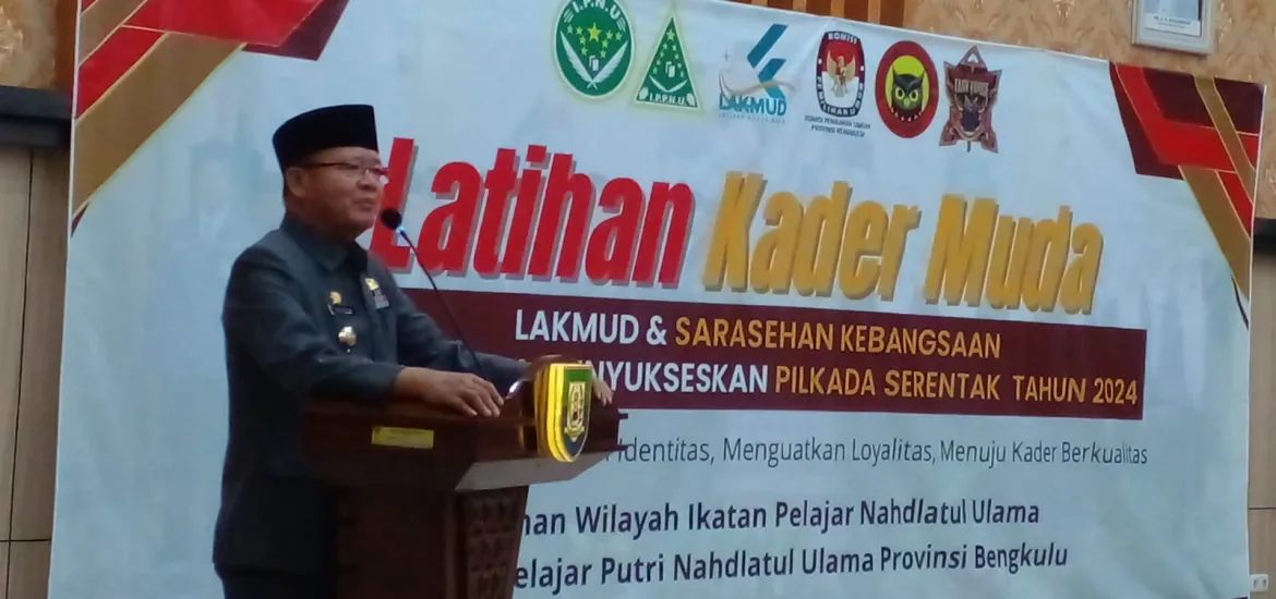 Siberzone.id - Gubernur Bengkulu Rohidin menghadiri sekaligus membuka secara resmi kegiatan Latihan Kader Muda (LAKMUD) Se Provinsi Bengkulu yang diselenggarakan oleh Ikatan Pelajar Nahdlatul Ulama (IPNU) dan IKatan Pelajar Putri Nahdlatul Ulama (IPPNU) Provinsi Bengkulu di Gedung Pola Kantor Gubernur Bengkulu, Jum'at (28/06/24).