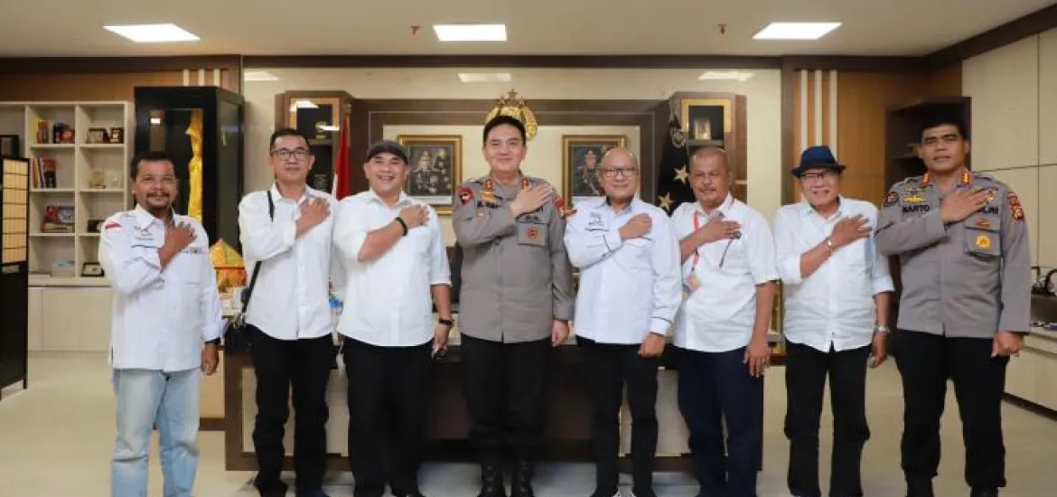 Kedatangan Ketua PWI Riau terpilih, Zulmansyah Sekedang dan rombongan disambut langsung Kapolda Riau dan Kabid Humas, Kombes Sunarto.