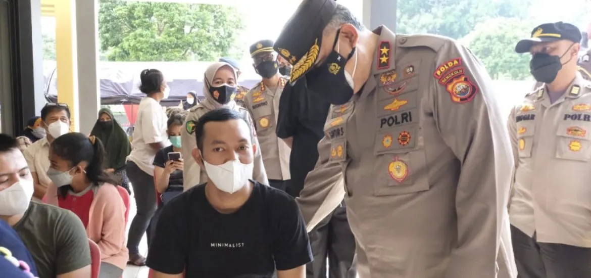 Kepolisian daerah bengkulu menargetkan 5.550 orang selesai divaksin covid 19 dalam vaksinasi serentak selama 2 hari. Kapolda bengkulu irjen pol guntur setyanto mengatakan vaksinasi ini sengaja digelar serentak di 8 lokasi dalam kota bengkulu dengan tujuan agar capaian 70 persen masyarakat indonesia maupun provinsi bengkulu selesai divaksin bisa tercapai.