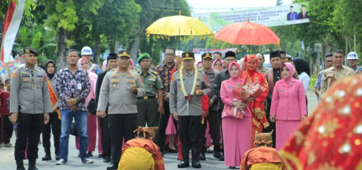 Dirinya disambut Kapolres Agam AKBP Ferry Ferdian, S.Ik bersama Forkopimda Agam dan pejabat utama Polres Agam.