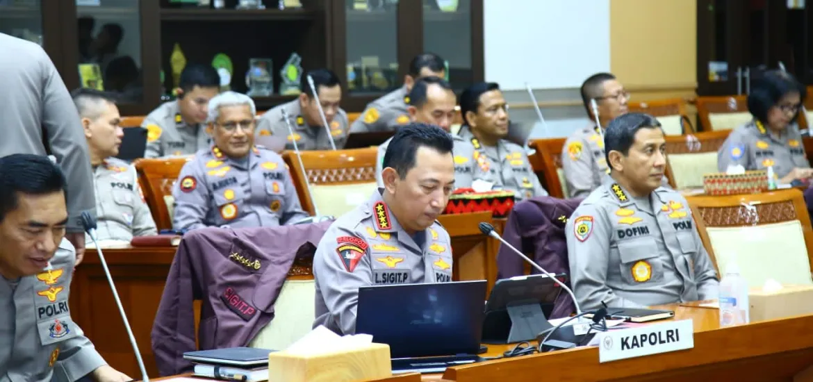 Rapat kerja antara Kapolri dengan Komisi III DPR RI kali ini bertemakan laporan evaluasi kinerja anggota Polri tahun anggaran 2022/2023. Kapolri memaparkan kinerja yang telah dilakukan Polri setahun lalu dan kasus-kasus menonjol yang terjadi. (GTA)