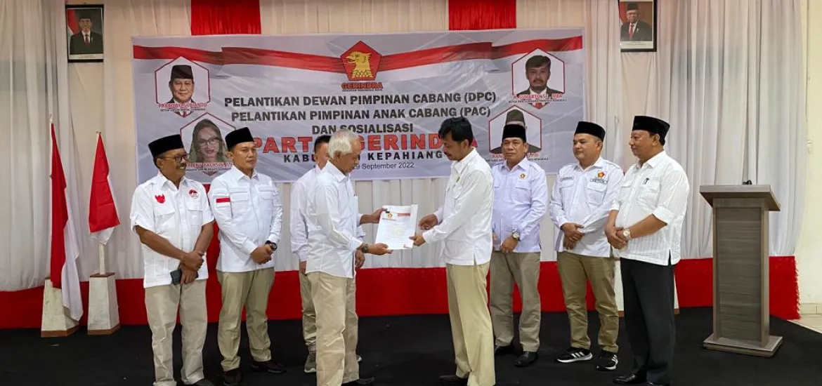 Ketua Dewan Pimpinan Daerah Partai Gerindra Provinsi Bengkulu Lantik Dewan Pimpinan Cabang dan Pimpinan Anak Cabang Partai Gerindra Kabupaten Kepahiang
