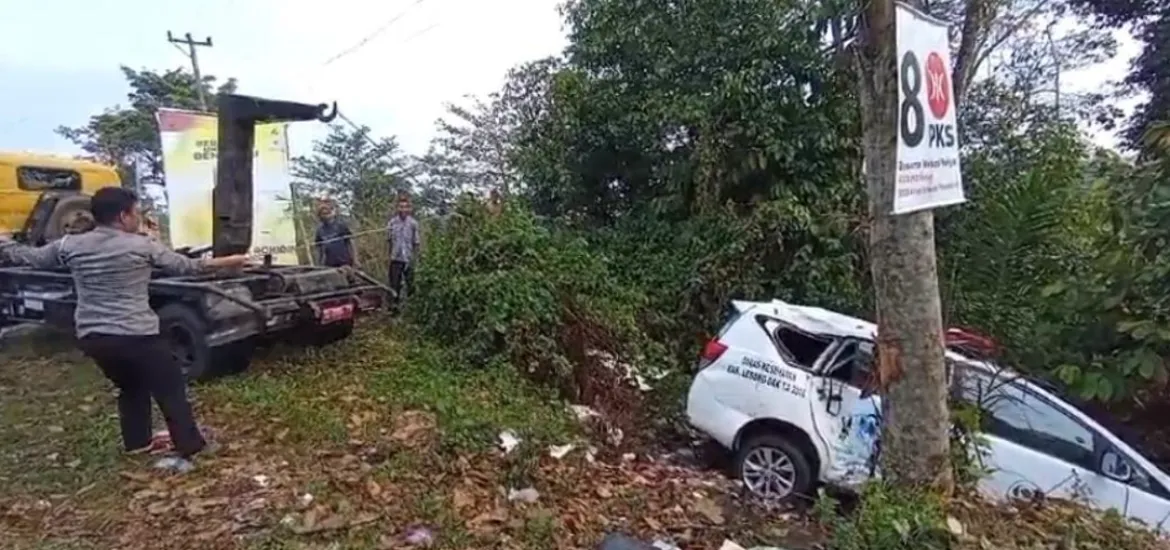 "Dugaan sementara kecelakaan terjadi karena jalan licin sehingga mobil terpeleset lalu ke luar jalan masuk semak-semak," kata Kasat Lantas.