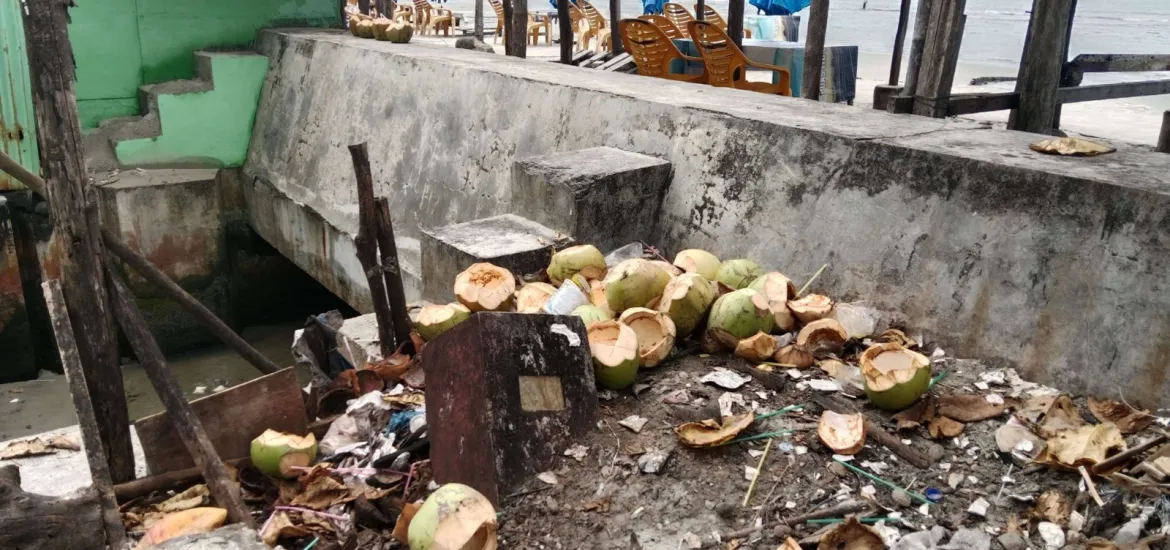 Sampah tersebut berupa sampah plastik, botol dan buah kelapa. Kondisi tersebut berdampak buruk seperti kebersihan, kenyamanan bahkan keindahan daya tarik wisata.