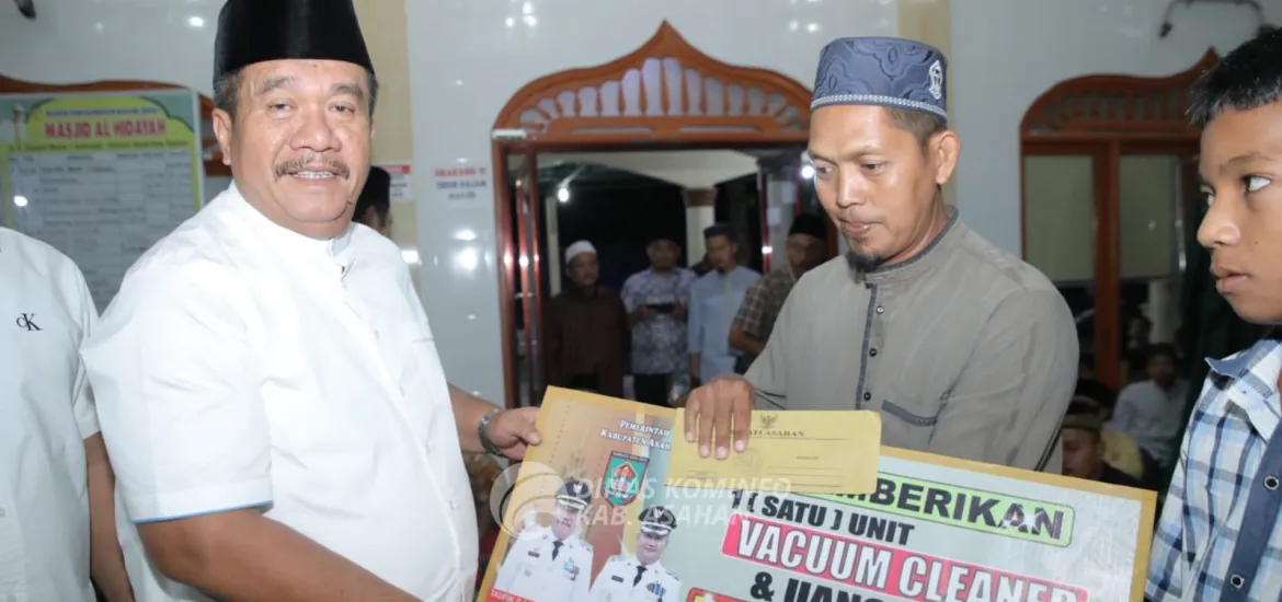 Siberzone.id, Asahan - Pemerintah Kabupaten Asahan melaksanakan Safari Ramadhan Khusus di dua Masjid yaitu Masjid Al-Hidayah Kelurahan Sidodadi Kecamatan Kota Kisaran Barat dan Masjid Haji Qosim Kelurahan Siumbut-Umbut Kecamatan Kota Kisaran Timur pada Ramadhan hari ke-15, Jumat (14/03/2025). Kegiatan safari Ramadhan khusus ini Pemerintah Kabupaten Asahan diberikan uang tunai sebesar Rp 2.000.000 dan vacuum cleaner kepada BKM serta pemberian santunan kepada kaum dhuafa dan 25 orang anak yatim.