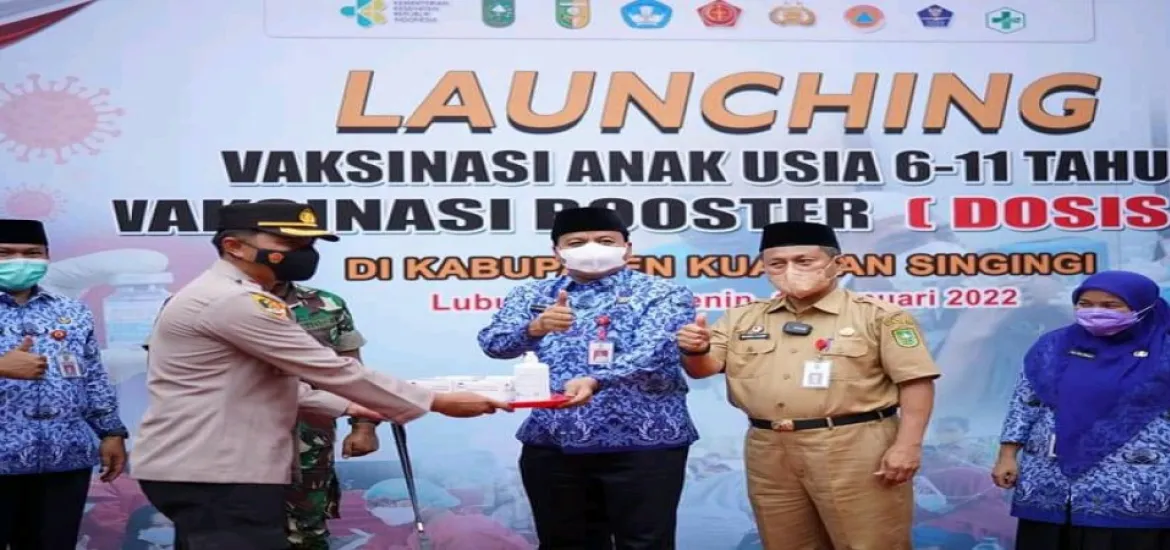 Dalam kegiatan Launching Penyuntikan Vaksinasi Covid-19 terhadap Anak Usia 6-11 Tahun dan Vaksinasi Booster (Dosis III) dihadiri oleh Kapolres Kuansing AKBP Rendra Oktha Dinata S.IK.,M.Si, Drs. Masrul Kasmy, M.Si (Plt. Kadinkes Prov Riau), Yufrizal Putra Candra (Konsultan UNICEF Perwakilan Indonesia), dr. Siska Handayani, M. Kes (Kepala Seksi Survailan dan Imunisasi Dinkes Riau),