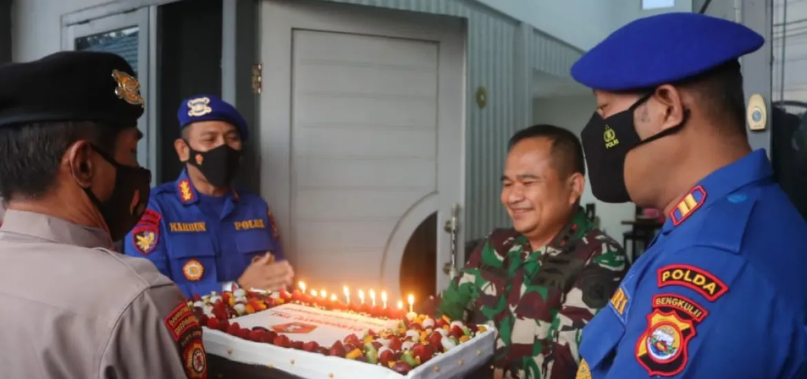 Bersama Irwasda Bengkulu Kombespol. Asep Tedi Nurasyah dan PJU Polda Bengkulu lainnya sejak pagi 06.00 WIB langsung ke rumah dinas Danrem dengan membawa sebuah kue ulang tahun berukuran besar. Pada kesempatan itu, Kapolda menyampaikan selamat ulang tahun kepada TNI yang jatuh pada 5 Oktober 2021 ini.