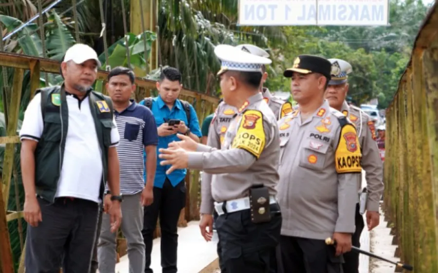 Dirlantas Polda Riau dan PUPR Provinsi Riau Tinjau Kemiringan Jembatan Sungai Rokan