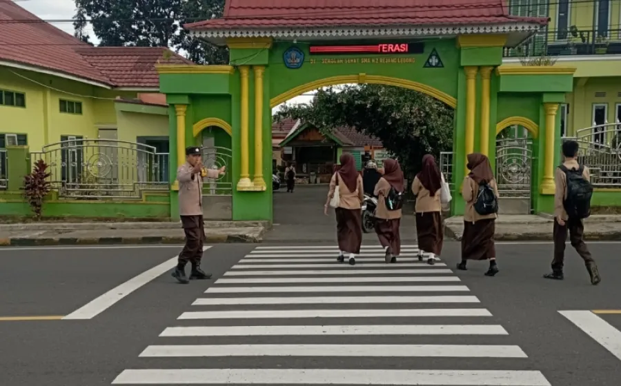 Polsek Curup Laksanakan Kegiatan Pengaturan Strong Point di tempat Rawan Kecelakaan dan Penyeberangan Pelajar